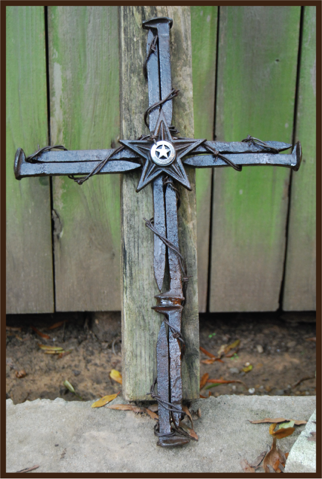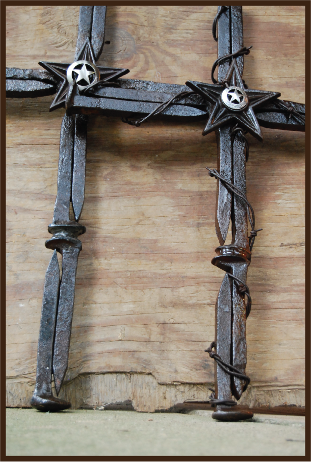 ecause each cross is handmade with barbed wire & rail spikes found in different areas of the country, no two crosses
