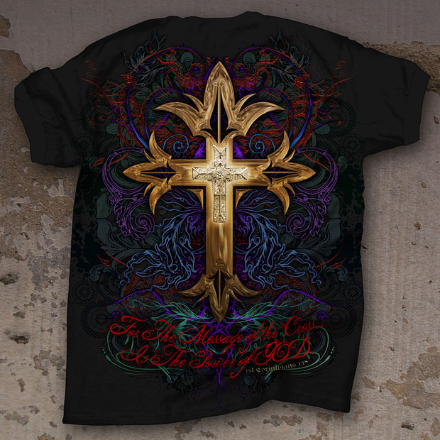 Revelation t-shirts feature vibrant, colorful graphics that match the popular shirts by Ed Hardy and Affliction, but with designs that glorify our Lord & Savior!!! This unique design is graphically printed on the FRONT and BACK of a distressed, preshrunk, 100% combed ring-spun cotton t-shirt. Revelation shirts WILL turn heads, and when they do, maybe The Lord will present the opportunity for you to share The Good News with a lost brother or sister out there!