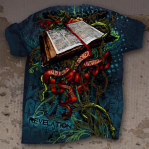 Revelation t-shirts feature vibrant, colorful graphics that match the popular shirts by Ed Hardy and Affliction, but with designs that glorify our Lord & Savior!!!  This unique design is graphically printed on the FRONT and BACK of a distressed, preshrunk, 100% combed ring-spun cotton t-shirt.  Revelation shirts WILL turn heads, and when they do, maybe The Lord will present the opportunity for you to share The Good News with a lost brother or sister out there!
