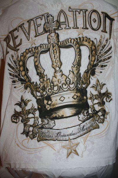Revelation t-shirts feature vibrant, colorful graphics that match the popular shirts by Ed Hardy and Affliction, but with designs that glorify our Lord & Savior!!! These unique designs are graphically printed on the front and back of a preshrunk, 100% combed ring-spun cotton t-shirt. Each shirt is super-soft vintage washed and hand-distressed. Revelation shirts WILL turn heads, and when they do, maybe The Lord will present the opportunity for you to share The Good News with a lost brother or sister out there!